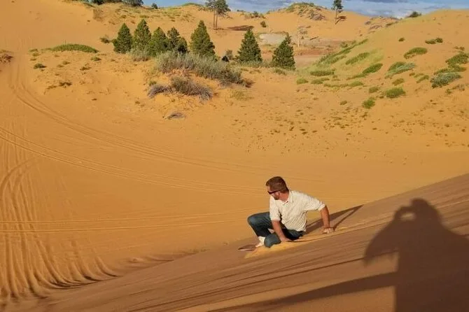 Dein Tag beinhaltet den kompletten UTV-Transport mit deinem lokalen Guide (du musst nicht selbst fahren) sowie Wasserflaschen – so kannst du dich voll aufs Erkunden des Peekaboo Slot Canyon und das Sandboarding beim Sonnenuntergang konzentrieren, ohne dich um Organisation oder Verpflegung zu sorgen.