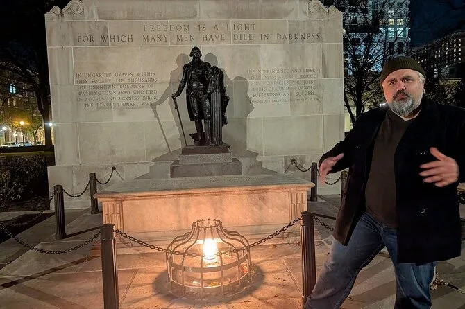 Dein Abend beinhaltet geführte Spaziergänge zu ikonischen Orten wie dem Liberty Bell Center und Hamiltons Haus mit einem lokalen Professor, der freizügige Geschichten aus dem Jahr 1776 erzählt – inklusive Sexskandalen – sowie viele Geistergeschichten auf Philadelphias ältesten Straßen, bevor es zu Fuß zurück ins Stadtzentrum geht.