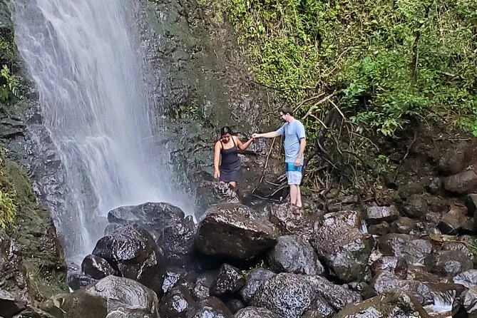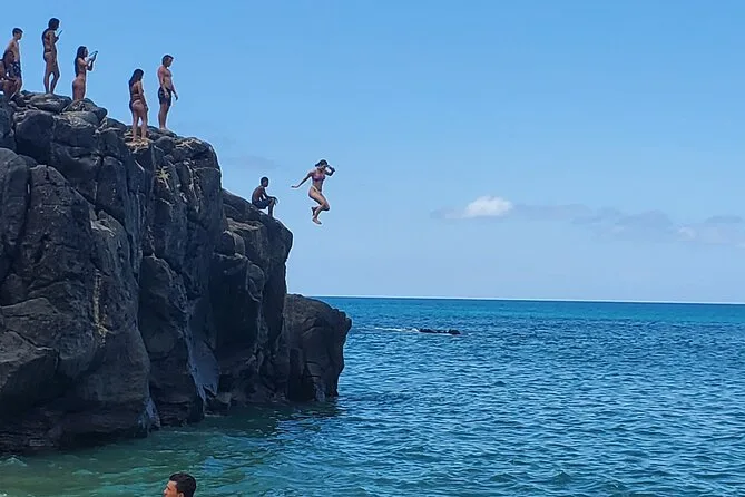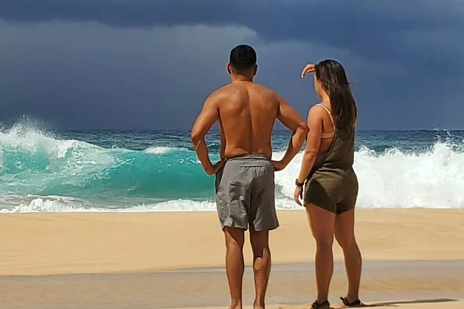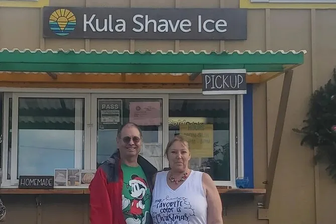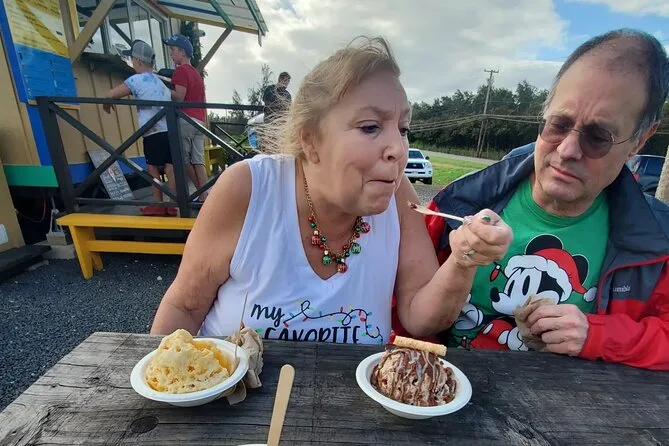 Beim Blow Hole war kaum jemand, nur wir und das rhythmische Rauschen des Wassers, das durch den Felsen schoss. Ich kam nah genug ran, um den Sprühnebel auf meinen Schienbeinen zu spüren. Manu erzählte, dass die Einheimischen früher ihre Kinder nach der Schule hierher brachten, um sich abzukühlen. Ganz in der Nähe gab es einen kleinen Imbisswagen mit Shaved Ice – wenn man Glück hat. Wir holten uns einen und schauten den Wellen zu, wie sie gegen die Felsen schlugen. Alles war entspannt und ungehetzt – wir konnten bleiben oder weiterziehen, ganz wie wir wollten.