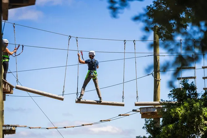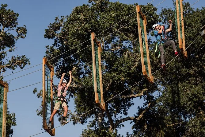 Dein Tag beinhaltet die Nutzung von Klettergurt und Helm sowie eine ausführliche Sicherheitseinweisung vor dem Start. Lokale Guides begleiten dich während des gesamten Parcours und unterstützen dich bei über 80 Hindernissen zwischen den alten Eichen von Santa Barbara.