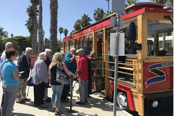 Dein Tag beinhaltet eine komplett geführte 90-minütige Fahrt mit Santa Barbaras Original-Trolley, mit Stopps oder Ausblicken auf historische Highlights wie Stearns Wharf, Old Mission Santa Barbara, Montecito-Strände, Museum of Natural History und mehr; bequeme Abholung nahe der Innenstadt; Kinderwagenfreundlich; Assistenztiere erlaubt; und viele spannende Geschichten entlang der Strecke.
