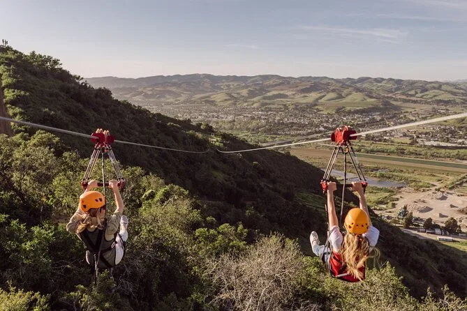 Du fährst mit einem 4x4 Hummer durch sonnige Protea-Felder hoch zum Startpunkt von Kaliforniens längster Zipline über dem Santa Ynez Valley. Mit erfahrenen lokalen Guides, die für Sicherheit und Spaß sorgen, saust du dreimal über Ranchland – ein Erlebnis, das du nicht so schnell vergisst.
