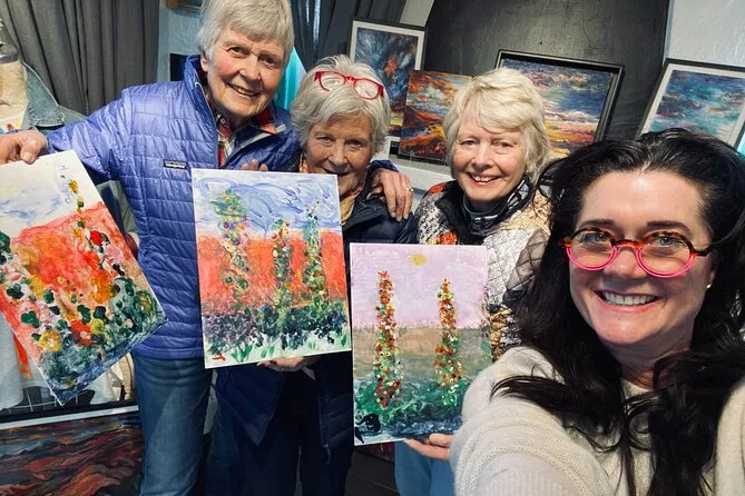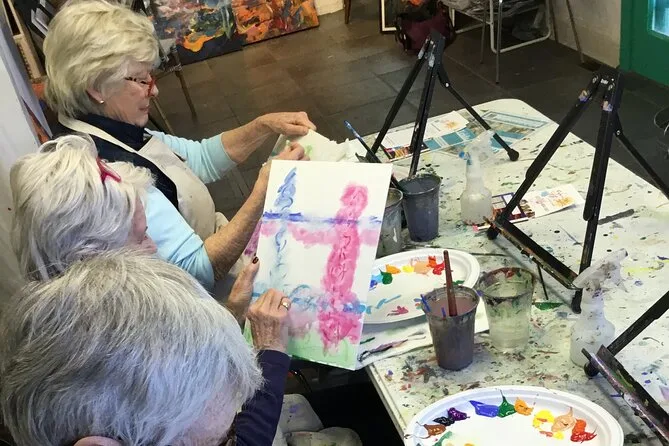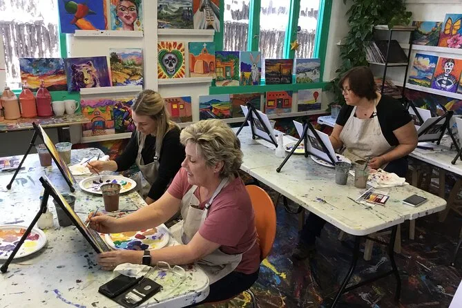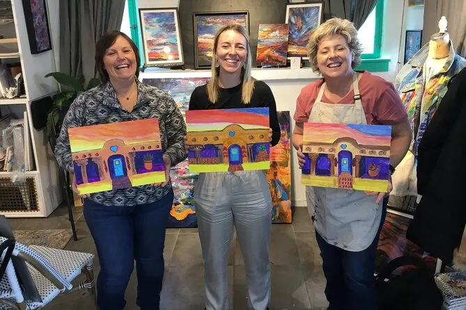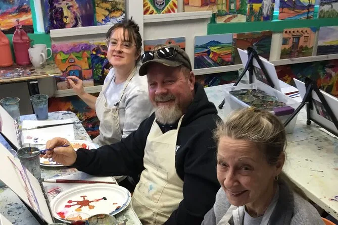 Das Atelier liegt nur eine Straße von der Plaza entfernt, oben über eine knarrende Treppe, die nach Ölfarbe und Holzpolitur duftet. Ich war früh dran – genug Zeit, um die bunten Leinwände im Flur zu bewundern und mich mit einem Paar aus Denver zu unterhalten, das ebenfalls spontan gebucht hatte. Unsere Lehrerin Robbi begrüßte uns mit einem breiten Lächeln und verteilte Schürzen, Pinsel und dicke weiße Leinwände. Sie hat diese entspannte Art, einen sofort willkommen zu heißen, selbst wenn man seit der Schulzeit keinen Pinsel mehr in der Hand hatte.