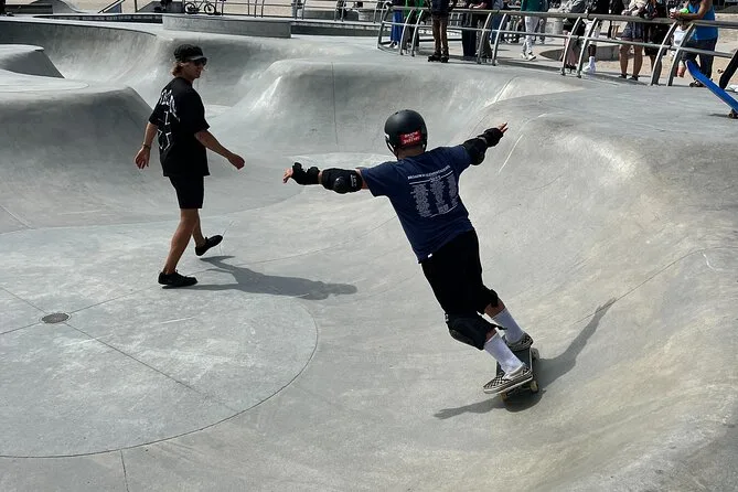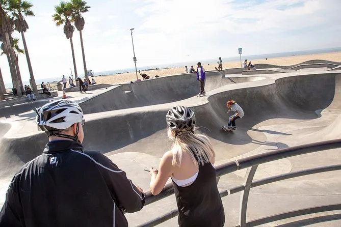 Dein Tag umfasst ein E-Bike pro Person, Wasserflaschen für unterwegs, Helmverleih für deine Sicherheit (auch wenn es am Anfang ungewohnt ist) und einen ortskundigen Guide, der alle Abkürzungen zwischen Santa Monica Beach, Venice Boardwalk und den ruhigen Kanälen kennt – bevor es zurückgeht.