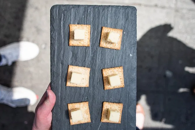 Die Tour beinhaltet neun Verkostungen bei verschiedenen Anbietern, aber kein klassisches Mittagessen; du probierst unterwegs kleine Häppchen.