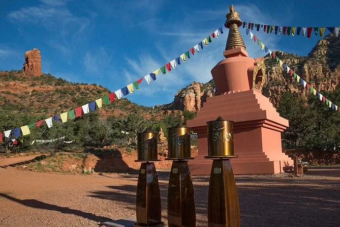 Die Tour umfasst mehrere Stopps wie Chapel of the Holy Cross, Tlaquepaque Village, Amitabha Stupa, Rachel’s Knoll und Airport Mesa und findet an einem Tag statt.