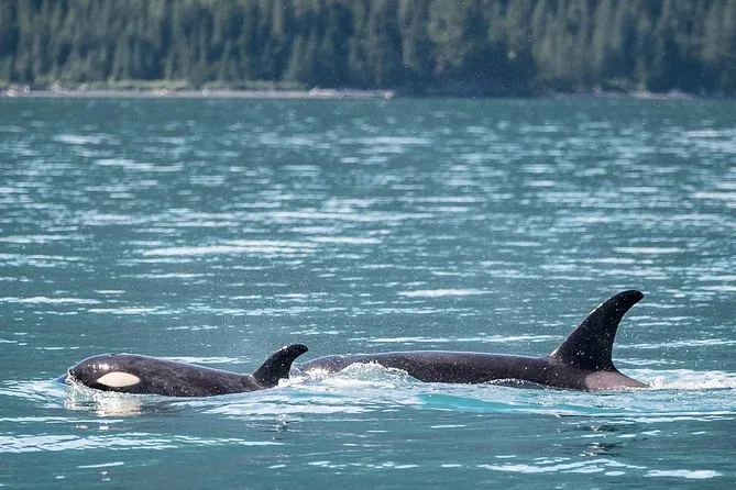 Die Crew verteilte Ferngläser (die halfen wirklich – ich entdecke sonst nie als Erste etwas) und zeigte nicht nur Orcas, sondern auch Papageientaucher, die knapp über den Wellen flogen, und Seeotter, die wie kleine Baumstämme trieben. Jemand fragte nach den Familienverbänden, und Jamie erklärte, dass Orcas ein Leben lang zusammenbleiben und sogar die Rufe der anderen nachahmen. Li lachte, als ich versuchte, einen Walnamen auf Alutiiq auszusprechen – ich habe ihn wohl völlig verhauen. Es gab heißen Tee für alle, die frierten (ich gehörte dazu), und die Leute tauschten Geschichten von anderen Touren aus. Ehrlich gesagt denke ich immer noch an diesen Ausblick – die scharfe grüne Küste und all die dunklen Schatten knapp unter der Wasseroberfläche.