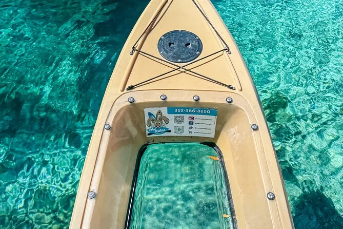 Du bekommst ein Kajak mit Glasboden, gepolsterten Sitz, Schwimmweste, Trillerpfeife, schwimmendes Paddel, trockenen Stauraum, Notfallset und einen lokalen Guide.