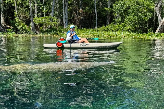 Erkunde Silver Springs im Kajak mit Glasboden, geführt von einem lokalen Guide. Beobachte Manatis und Schildkröten unter dir, entdecke versunkene Wracks und Statuen im kristallklaren Wasser und lausche Geschichten aus dem „alten Florida“. Es gibt keine Pausen, dafür viele unvergessliche Tierbegegnungen.