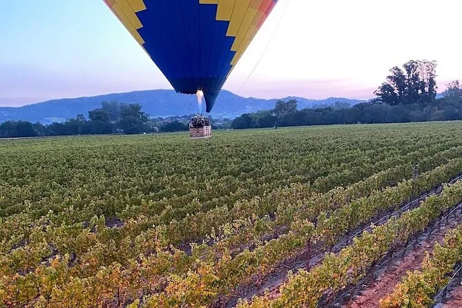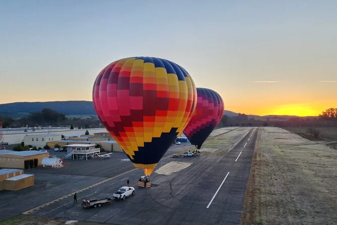 Dein Morgen beginnt mit Snacks und frisch gebrühtem Kaffee oder Tee, während du in der Lounge am Flughafen Sonoma die Ballons beim Aufblasen beobachtest. Nach der geführten Ballonfahrt über das Weinland von Sonoma Richtung Napa wirst du per Shuttle zurückgebracht und feierst mit einem Champagner-Toast, während dein Pilot spannende Geschichten erzählt.