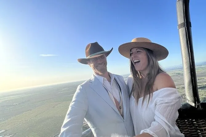 Die Landung war sanfter als erwartet (trotzdem hielt ich mich fest). Lachend stiegen wir aus dem Korb, dann ging’s zurück zum Flughafen für den traditionellen Champagner-Toast. Mark erzählte noch ein paar wilde Geschichten von früheren Flügen – ich bin mir nicht sicher, ob er alle erfunden hat. Wie auch immer, ich denke immer wieder an das Licht über Carneros und wie alles dort oben langsamer schien.