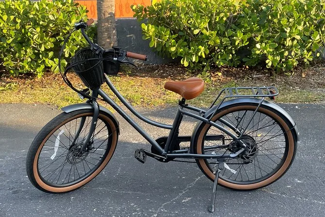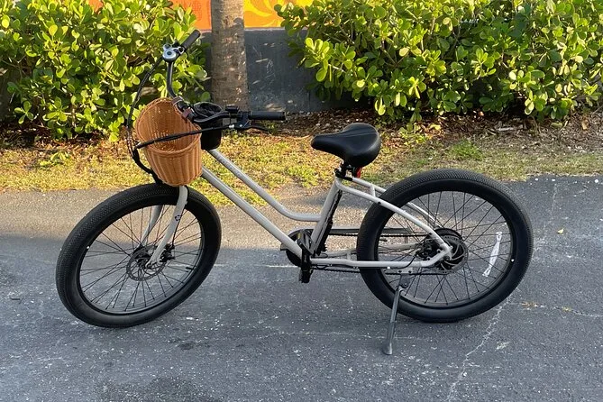 Ich habe mein E-Bike direkt an der Central Ave abgeholt – super unkompliziert und ohne Stress. Der Ladenbesitzer gab mir einen Helm und zeigte, wie man den Sitz einstellt (ich bin 1,70 m groß, aber es gab auch Räder für kleinere und größere Fahrer). Vorne ist ein kleiner Korb für die Tasche, dazu ein Flaschenhalter – glaub mir, den wirst du brauchen, wenn die Sonne in Florida gegen Mittag richtig knallt.