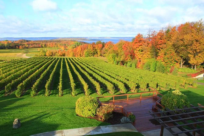 Dein Tag startet mit der Abholung in Traverse City in einem klimatisierten Bus, begleitet von einem freundlichen lokalen Guide. Ein Yeti-Kühler steht bereit, falls du Getränke oder Snacks mitbringen möchtest. Verkostungen sind nicht im Preis enthalten, können aber an jedem Weingut gegen Aufpreis gebucht werden – außerdem gibt es zwischendurch viele Gelegenheiten, lokalen Käse oder Aufstriche zu probieren, bevor es gemeinsam zurück in die Stadt geht.
