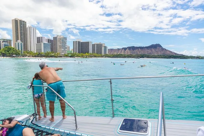 Der Katamaran legt am Waikiki Beach ab; genaue Infos erhältst du nach der Buchung.
