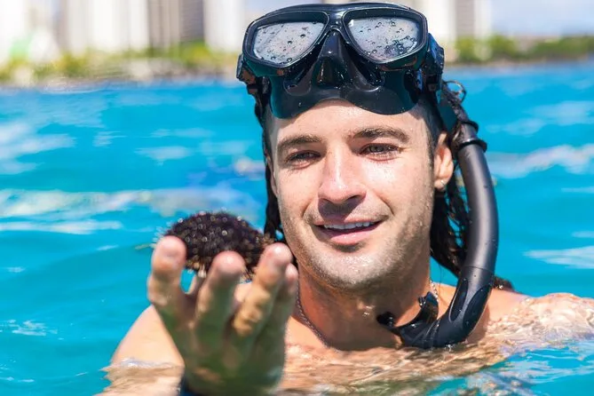 Das Wasser vor Waikiki war viel ruhiger als erwartet, fast spiegelglatt, nur ab und zu das Platschen am Rumpf des Katamarans. Als ich ins Wasser glitt, wurde alles still, nur mein Atem durch den Schnorchel war zu hören. Direkt unter mir schwamm eine grüne Meeresschildkröte vorbei – langsam und völlig entspannt – und ich dachte, wie uralt und faszinierend diese Tiere aus der Nähe wirken. Kaleo zeigte uns einen Oktopus, der sich in den Felsen versteckte (er nannte ihn „he’e“ und versuchte uns das hawaiianische Wort beizubringen; ich hab’s wahrscheinlich verhauen). Überall blitzten gelbe Fische auf, aber ehrlich gesagt konnte ich meinen Blick kaum von der Schildkröte abwenden.