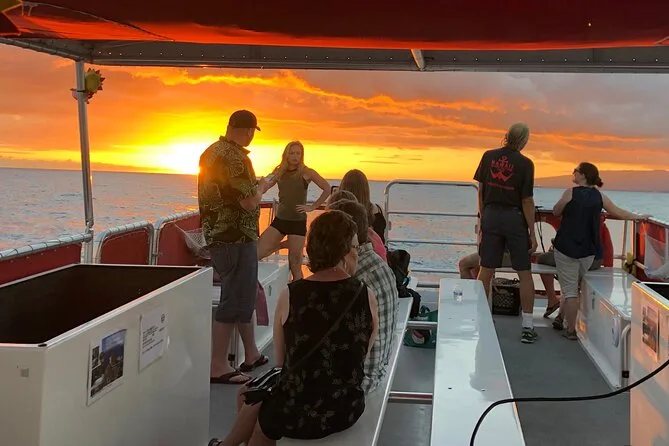 Ich dachte erst, das mit dem Glasboden wäre eher was für Kinder, aber als wir vor Diamond Head ankamen und die Crew die Unterwasserlichter einschaltete, änderte sich das. Fische schwärmten tatsächlich heran – silberne Blitze, die umherflitzten, auch einige größere. Man hörte immer wieder das erstaunte Keuchen eines Kindes, wenn etwas Neues vorbeizog. Es war fast meditativ, in dieses leuchtende Wasser zu schauen, während der Himmel darüber seine Farben wechselte – erst Orange, dann Lila, schließlich ein tiefes Blau, das alles langsamer wirken ließ.