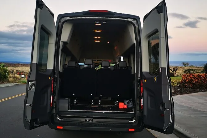 Ihr Transfer beinhaltet die Abholung am Hotel in Waikoloa oder Waimea durch einen lokalen Fahrer, alle Kraftstoffzuschläge, Flughafensteuern, Parkgebühren sowie bei Bedarf spezielle Kindersitze – alles organisiert, bevor Sie überhaupt in den Van steigen.