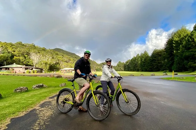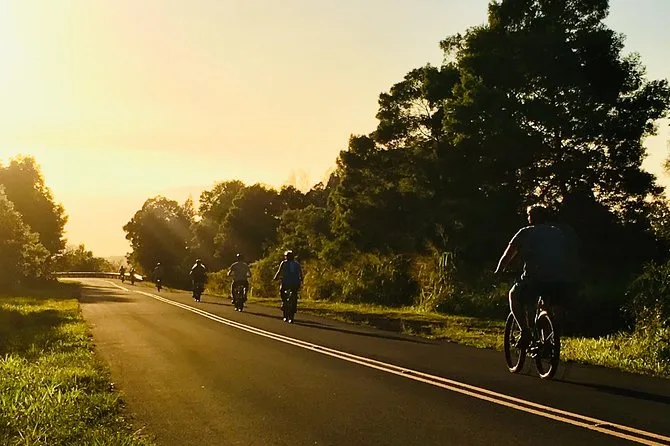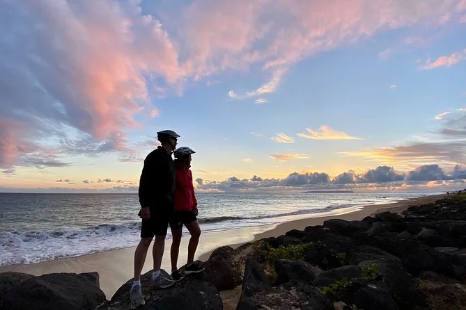 Dein Tag beginnt mit einer geführten Van-Fahrt zum Waimea Canyon, inklusive Stopps an versteckten Aussichtspunkten. Oben steigst du auf bereitgestellte Hybridräder mit Helm und Handschuhen um. Die Eintrittsgebühren für die State Parks sind inklusive. Ein erfahrener lokaler Guide begleitet dich die ganze Zeit und am Ende gibt’s kaltes Wasser oder lokalen Saft am Kekaha Beach, während die Sonne untergeht.
