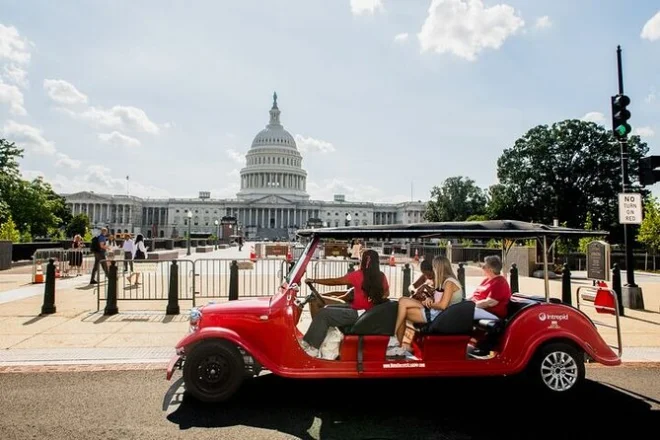 Erlebe Washington DCs Herz in einem offenen Elektro-Cart mit kleinem Guide-Team – entdecke Capitol Hill, Lincoln Memorial und das Weiße Haus hautnah. Es gibt Gelegenheiten zum Aussteigen für Fotos oder stille Momente am Vietnam Veterans Memorial. Locker, spannend und voller Geschichten – mit überraschenden Emotionen zu den berühmten Highlights.