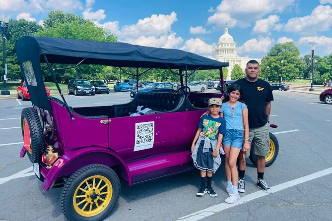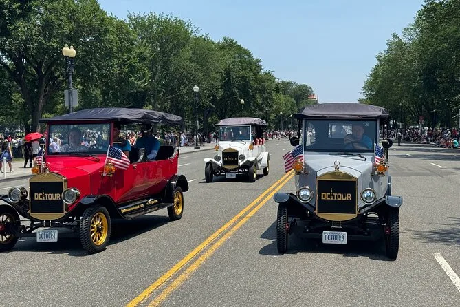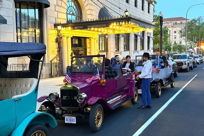 Deine Fahrt umfasst eine zweistündige Stadtrundfahrt durch Washington DC im luxuriösen Model T Nachbau – wähle bei der Buchung Tag- oder Nachtoption. Ein lokaler Guide erzählt spannende Geschichten, während du an Highlights wie Capitol Hill und dem Weißen Haus vorbeifährst. Für Gruppen gibt es 7-Sitzer, private Touren werden in 4-Sitzern angeboten.