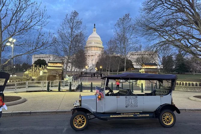 Erkunde Washington DCs berühmteste Denkmäler in einem offenen, elektrischen Oldtimer. Ein lokaler Guide erzählt spannende Geschichten, während du vom Capitol Hill über das leuchtende Lincoln Memorial bis zum Weißen Haus bei Nacht fährst. So siehst du DCs Highlights mit ganz neuen Augen – und findest vielleicht sogar ein paar neue Freunde.