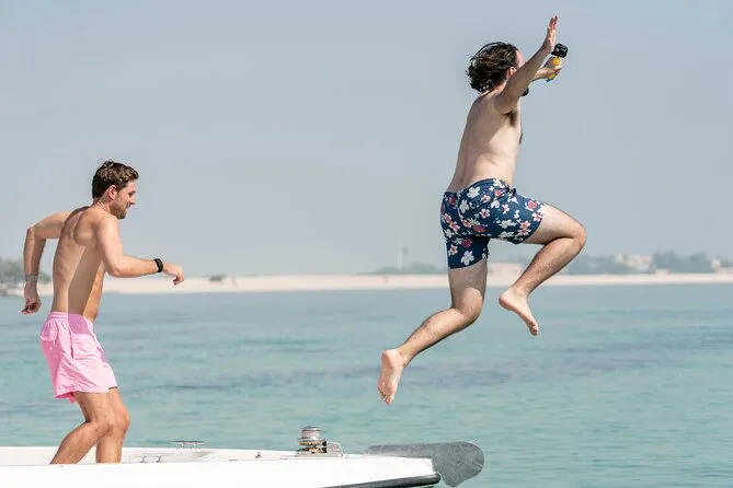 Inselhopping Abu Dhabi Boot Delfine Etihad Towers Strandpause