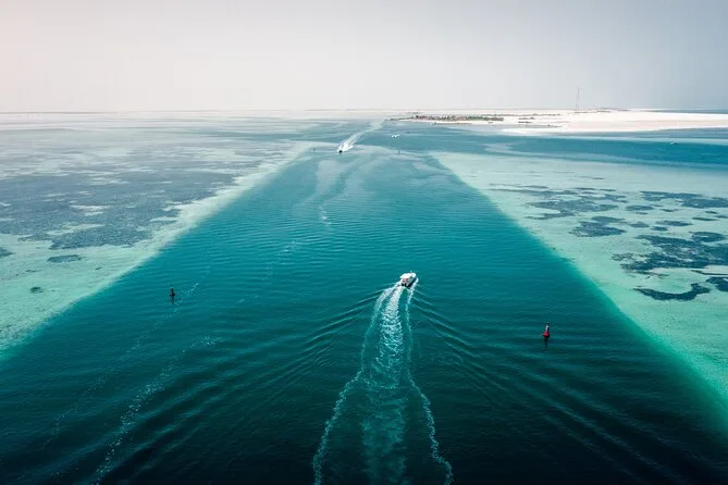 Vorbei an Etihad Towers und Qasr Al Watan gleitest du durch das klare Wasser des Golfs bei Dolphin Island – mit etwas Glück entdeckst du Delfine – bevor du am Strand von Bahrani Island mit kühlen Getränken und warmem Sand unter den Füßen entspannst. Vier Stunden Auszeit vom Großstadttrubel, aber die Skyline von Abu Dhabi ist immer in Sicht.
