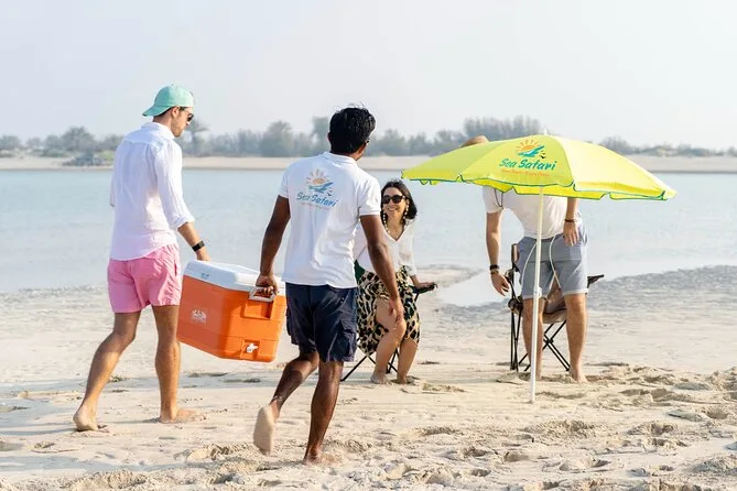 Dein Tag umfasst eine vierstündige Sea Safari rund um Abu Dhabis Inseln mit Fotostopps an Etihad Towers und Qasr Al Watan, Schwimmen bei Dolphin Island mit Delfinchance sowie eine entspannte Strandzeit auf Bahrani Island mit Wasser und Erfrischungen.