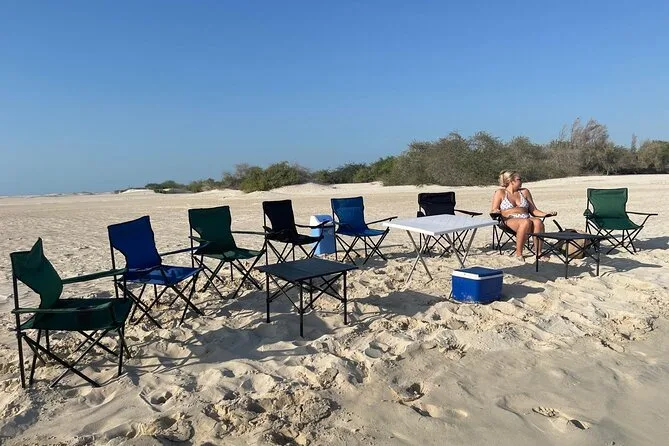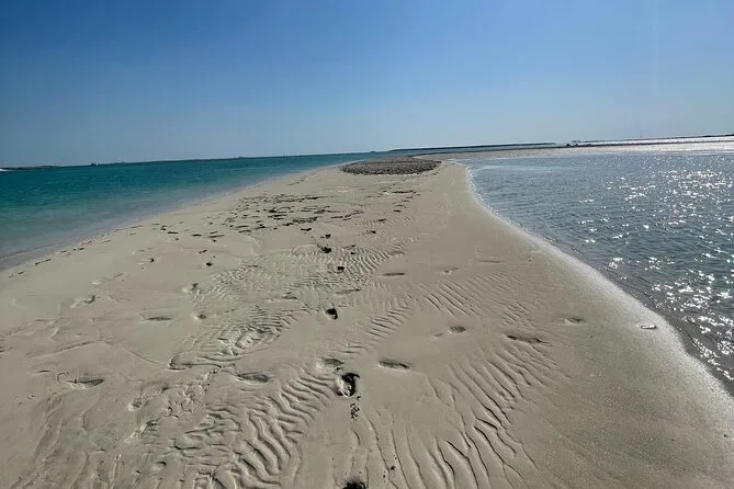Dein Tag startet mit einer Speedboot-Fahrt ab Abu Dhabi Corniche, mit Stopps zum Schwimmen auf Dolphin Island, Strandspielen wie Volleyball oder Fußball in Crystal Bay, begleitet von Musik und Erfrischungen – ein einfaches Sandwich mit frittierten Bananen gibt’s zum Mittag, bevor du nach vier Stunden aufs Festland zurückkehrst.
