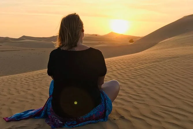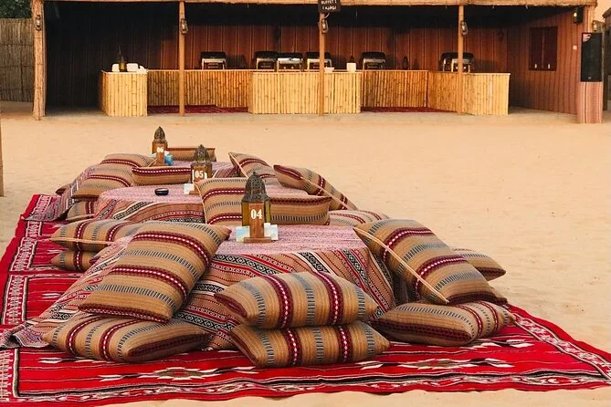 Dein Abend beinhaltet Hin- und Rückfahrt im klimatisierten Land Cruiser von Hotels oder Unterkünften in Abu Dhabi, aufregendes Dune Bashing, Besuch einer Kamel-Farm, kurze Kamelritte, Sandboarding, Henna-Malerei, Zugang zur Shisha-Lounge, Wasser und Softdrinks, Live-Bauchtanz- und Tanoura-Shows sowie ein komplettes BBQ-Dinner mit Fleisch- und vegetarischen Gerichten – alles in unserem traditionellen Wüstencamp für dich vorbereitet.