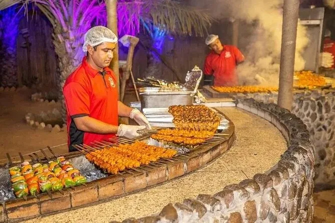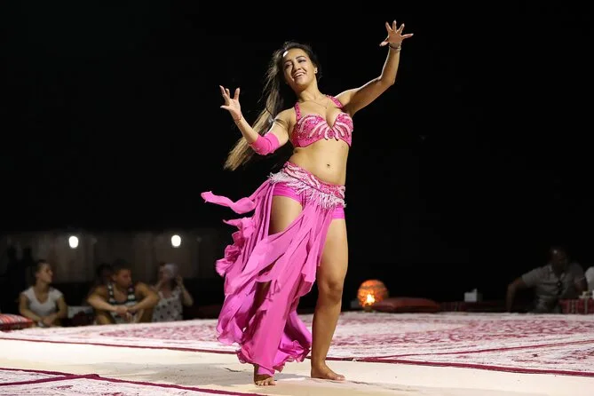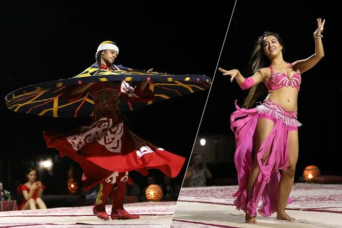 Dein Tag startet mit klimatisiertem 4WD-Transfer von und zu deinem Hotel in Abu Dhabi; Besuch einer Kamel-Farm; geführtem Dune Bashing; Sandboarding; Eintritt in ein Beduinen-Camp mit arabischem Kaffee und Datteln; Henna-Malerei; Shisha-Rauchen; kurzen Kamelritten; traditionellen Tanoura- und Bauchtanzshows (außer während Ramadan); sowie einem offenen BBQ-Buffet mit vegetarischen Optionen – bevor du unter dem Sternenhimmel zurückfährst.