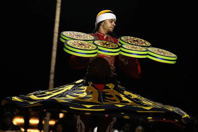 Als wir im Beduinen-Camp ankamen, leuchteten schon die Laternen. Wir bekamen kleine Tassen arabischen Kaffees (bitter, aber lecker) und klebrige Datteln, die nach Karamell schmeckten. Einige ließen sich Henna-Tattoos machen oder probierten Shisha – ich setzte mich einfach hin und lauschte der Musik, die von der Bühne herüberwehte. Später gab es Bauchtanz und einen wirbelnden Tanoura-Tänzer, der allein durch sein Drehen alle schwindelig machte. Das Abendessen war ein rauchiges BBQ-Buffet; ich lud mir ordentlich Lamm auf den Teller und habe wahrscheinlich zu viel gegessen. Irgendwann wurden alle Lichter gedimmt, und es wurde still – nur Sterne über uns und irgendwo leises Lachen. Dieses Schweigen ist es, an das ich mich am meisten erinnere.