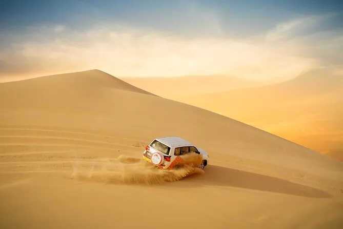 Du fährst von Abu Dhabi aus in die goldenen Morgen-Dünen zum aufregenden Dune Bashing, triffst Kamele auf einer lokalen Farm, probierst Sandboarding und machst Fotos mit einem echten Falken. Mit Abholung und kalten Getränken im Camp hast du Zeit, die Stille der Wüste zu genießen, bevor es zurückgeht – vielleicht noch mit einem breiten Grinsen von der letzten wilden Fahrt.