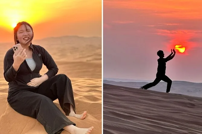 Spüre den Puls bei der Dünenfahrt über Al Madams rote Sandberge, lache über Sandboard-Stürze und genieße ein BBQ unter freiem Himmel, während Feuertänzer die Nacht erhellen und lokale Musik durchs Camp weht. Mit Abholung vom Hotel und einem freundlichen Guide erlebst du mehr als geplant – vielleicht sogar etwas Sand in den Schuhen.