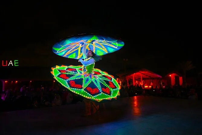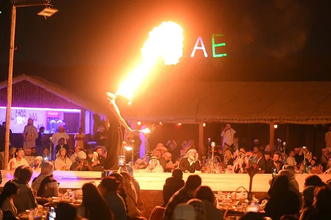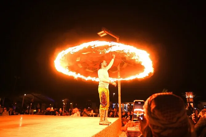Dein Tag beinhaltet die Abholung und Rückfahrt vom Hotel oder deiner Unterkunft in Dubai mit einem 4x4, Wasserflaschen während der gesamten Tour, Zeit zum Ausruhen bei Ankunft an den roten Dünen von Al Madam, dann Dünenfahrten und Sandboarden mit vielen Fotostopps, Zugang zu einem traditionellen Camp mit optionalen kurzen Kamelritten und Henna-Tattoos, gemeinsames Shisha-Rauchen (wenn gewählt) sowie ein internationales BBQ mit vegetarischen und nicht-vegetarischen Gerichten (wenn ausgewählt) – abgerundet mit Tanura-Tanz und Feuershows, bevor es zurück nach Dubai geht.