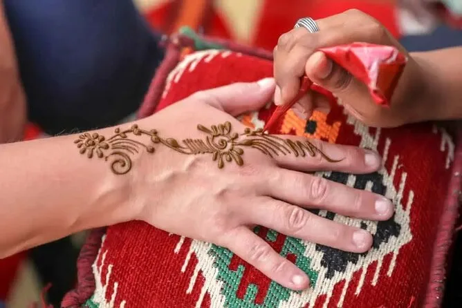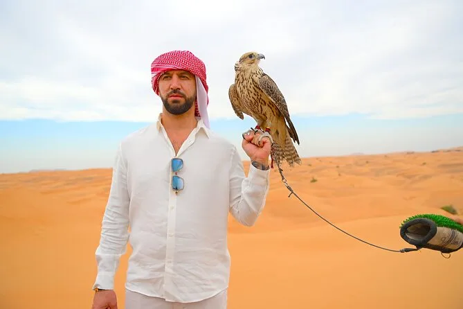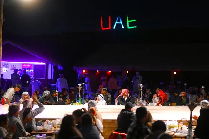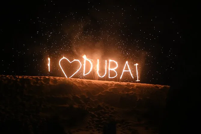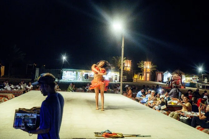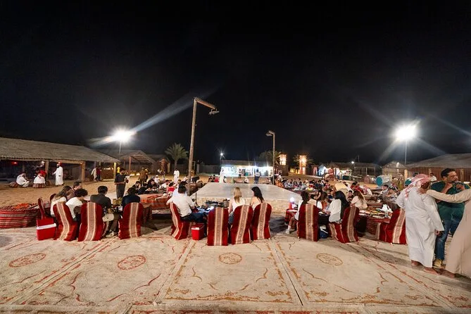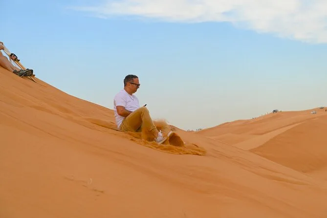 Die Tour umfasst Dünenfahrten auf den roten Dünen von Al Madam, Sandboarden, kurze Kamelritte (optional), Henna-Tattoos, Shisha (optional), Live-Unterhaltung und ein BBQ-Abendessen.