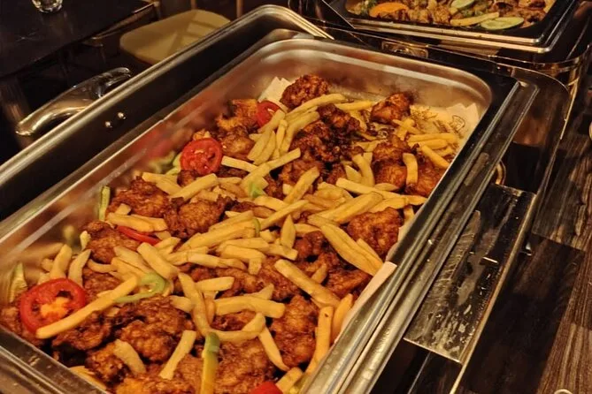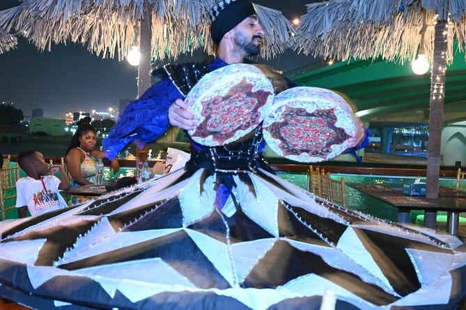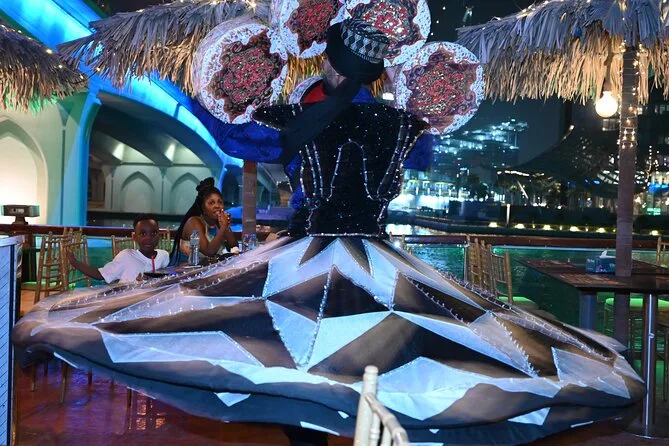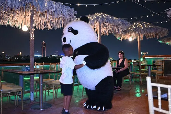 Dein Abend beinhaltet eine zweistündige Sightseeing-Fahrt auf dem Dubai Creek mit arabischem Buffet (vegetarische und fleischhaltige Gerichte), Wasser und Softdrinks während der gesamten Fahrt sowie familienfreundliche Unterhaltung wie Tanoura-Tanz, Puppenaufführungen – sogar eine Panda-Show – und Musik. Bei Buchung kannst du eine gemeinsame Abholung und Rückfahrt dazubuchen, die den Start und das Ende besonders entspannt machen.
