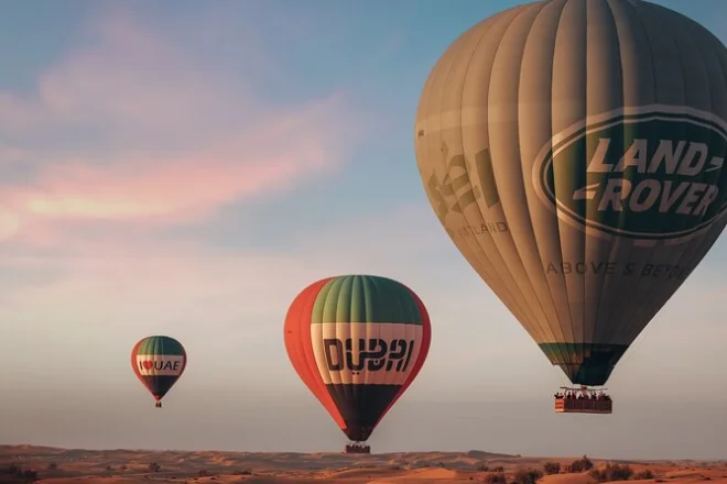 Dein Tag startet mit der Abholung im Land Rover Defender von jedem Hotel in Dubai, gefolgt von Tee oder Kaffee vor dem Start. Dann geht es 60 Minuten mit dem Heißluftballon bei Sonnenaufgang inklusive Live-Falknerei und Geschichten in der Luft. Anschließend genießt du exklusiven Zugang zu einer königlichen Wüstenoase mit einem Michelin-Sterne-Frühstück am eigenen Tisch, bevor kurze Kamelritte dich zurück in die Stadt bringen.