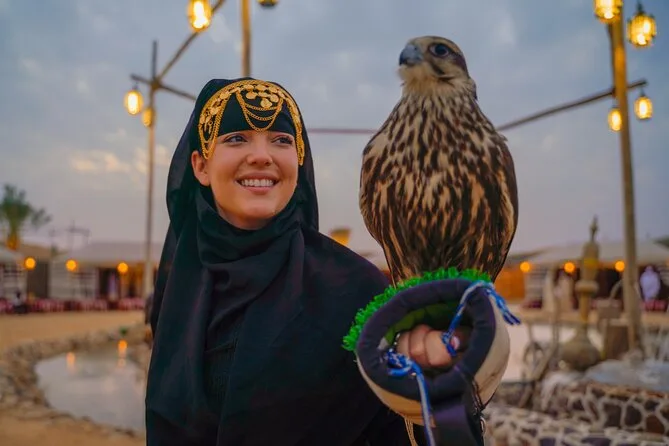 Henna-Malen, Shisha, Falkenfotos, Livemusik, Kamelritte und mehr erwarten dich im Camp.