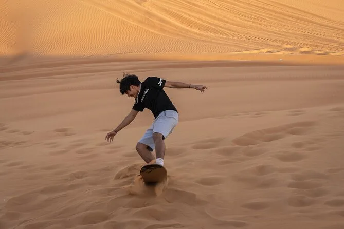 Quadfahren, Dünen-Bashing, Sandboarding, Kamelreiten, Falken-Fotos, Henna-Malerei, Shisha und Live-Tanzshows.