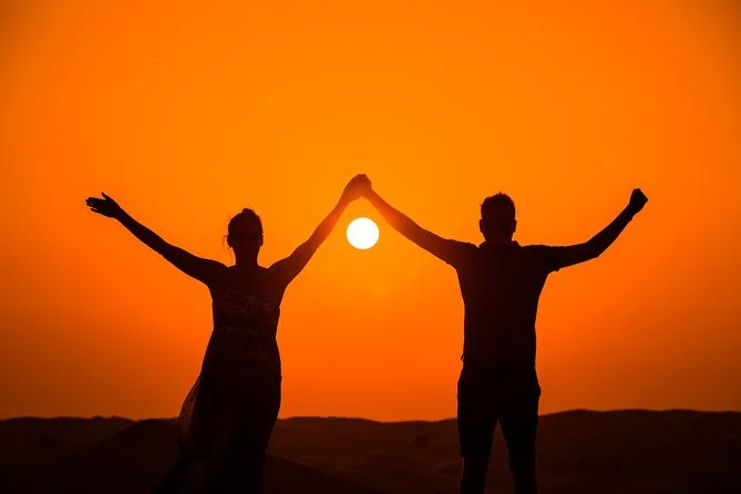 Erkunde Dubais rote Dünen im 4WD, probiere Sandboarding oder Kamelreiten, bevor du im Al Khayma Camp bei Qahwa, BBQ, Live-Shows, Henna und Shisha entspannst. Der Abend endet mit Sterneschauen unter klarem Wüstenhimmel – und vielleicht lächelst du am Ende sogar fremde Leute an.