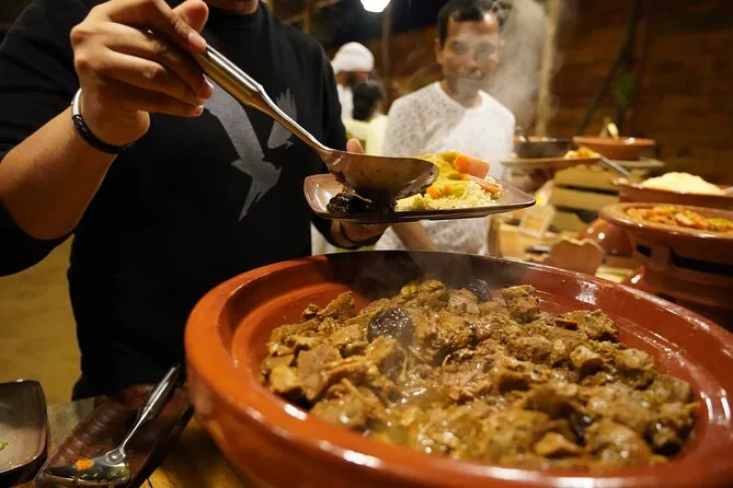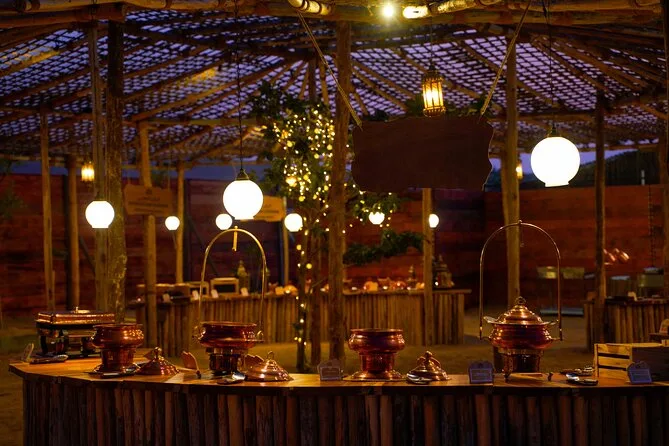 Dein Tag beinhaltet Abholung und Rückfahrt vom Hotel mit einem lizenzierten Fahrer in einem klimatisierten 4WD; alle Dune-Bashing-Aktivitäten; Sandboarding; unbegrenzt Wasser und Softdrinks; arabischen Kaffee (Qahwa), Datteln und Gaymat-Süßigkeiten bei Ankunft; kurze Kamelritte (wiederholbar); Falkenerlebnis mit Fotos; Henna-Malerei für Damen; Shisha in ausgewiesenen Bereichen; Zugang zu allen Live-Shows wie Yola-Tanz, Falknershow und großer Feuershow; ein komplettes BBQ-Buffet mit vegetarischen Optionen; plus eine abendliche Sternbeobachtung mit Guides, bevor es zurück zur Unterkunft geht.