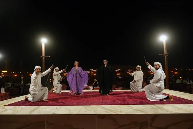 Dünenfahrt, Kamelritt, Live-Tanzshows (Bauchtanz, Tanura), Feuershow, Henna-Malerei, Sandboarding, Shisha (in ausgewiesenen Bereichen) und BBQ-Dinner sind inklusive.