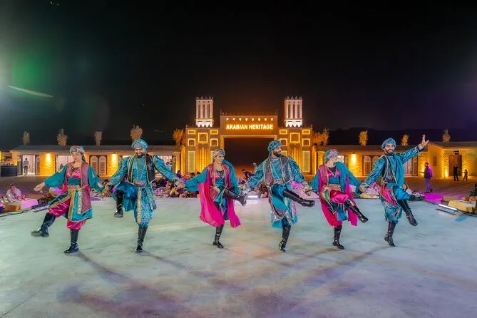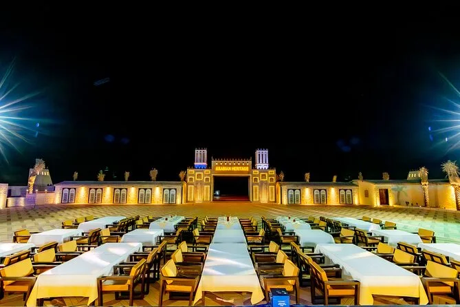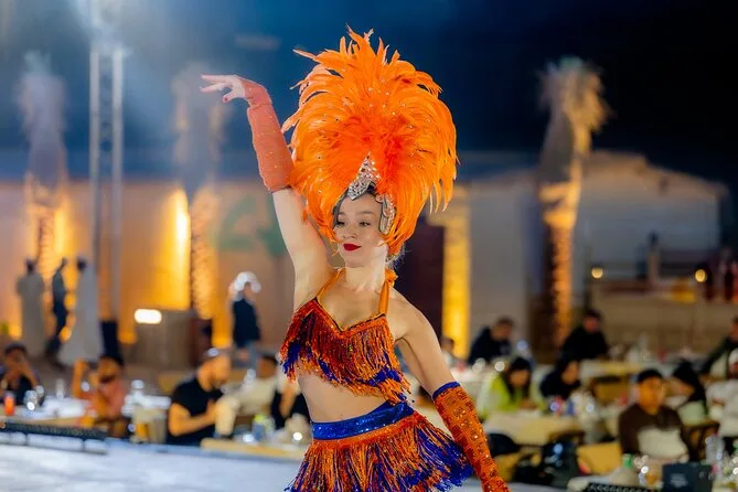 Dein Abend beinhaltet Abholung und Rückfahrt im 4x4 von Dubai oder Sharjah; aufregendes Dune Bashing auf roten Dünen mit erfahrenem Guide; eine kurze Kamelritt; unbegrenzt Softdrinks sowie arabischen Tee und Kaffee im Camp; Henna-Tattoos von lokalen Künstlern; Zugang zu einem arabischen Wüstencamp; Sandboarden; neun Live-Shows inklusive Bauchtanz und Feuershows; sowie ein internationales BBQ-Buffet mit vegetarischen Optionen, bevor es spät in der Nacht zurück zum Hotel geht.