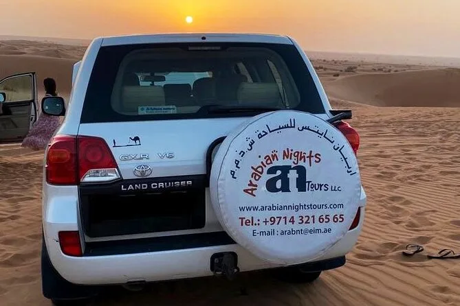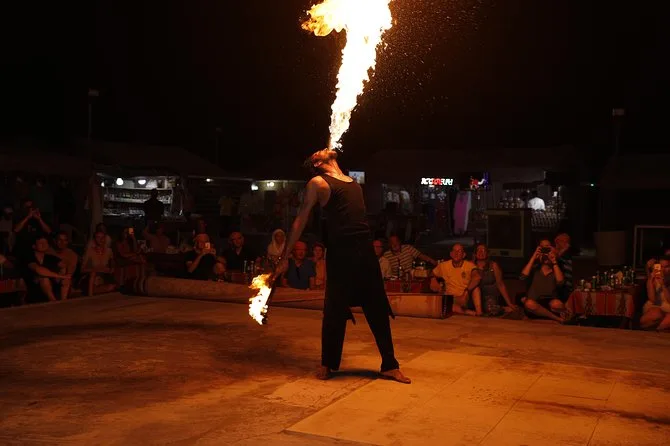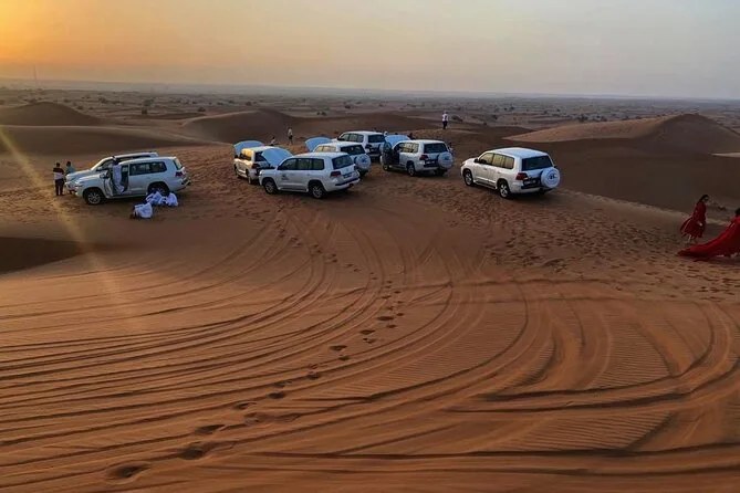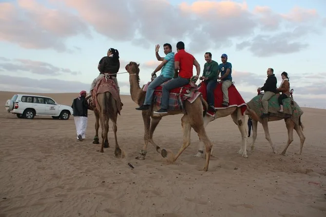 Dune Bashing, Kamelreiten, Sandboarding, Henna-Malerei, Shisha-Ecke, BBQ-Abendessen und Live-Shows.