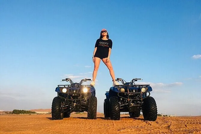 Du hast 30 Minuten Zeit, die Quads im ausgewiesenen Bereich der Lahbab-Wüste selbst zu fahren.