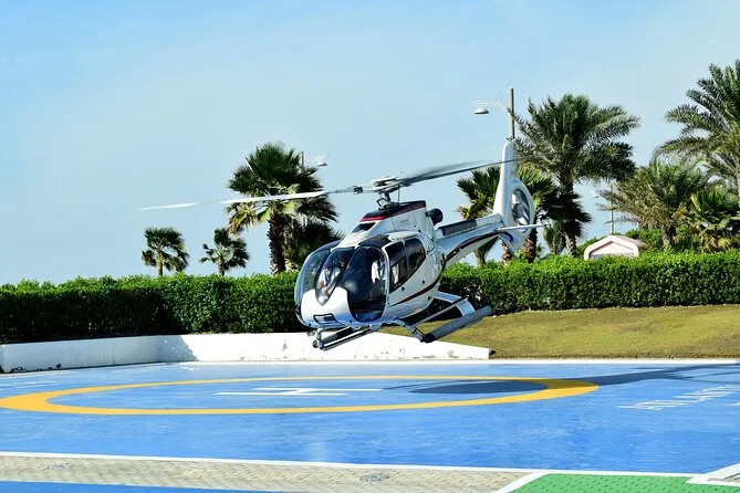 Ihr privater Hubschrauberrundflug über Abu Dhabis Top-Sehenswürdigkeiten ist je nach gewählter Option inklusive. Denken Sie daran, Ihren gültigen Lichtbildausweis mitzubringen und rechtzeitig zum Check-in und zur Sicherheitsunterweisung zu erscheinen – alles andere wird für Sie organisiert, damit Sie einfach nur die Aussicht genießen können.