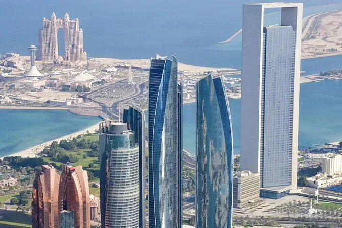 Über dem Marina Mall wird schnell klar, warum die Einheimischen diesen Ort lieben. Das Glasdach glänzt in der Sonne und man sieht Familien am Wasser spazieren. Ich erhaschte einen Blick auf kleine Fischerboote, die sanft vor der Küste schaukelten – etwas, das man vom Straßenlevel nie bemerken würde. Als Nächstes kam das Emirates Palace in Sicht. Von oben wirken die goldenen Kuppeln fast unwirklich vor dem blauen Golf. Khalid erzählte, dass es nicht nur ein Hotel, sondern ein Symbol der Gastfreundschaft hier ist; er hat einmal eine Hochzeitsgesellschaft in klassischen Autos genau bei Sonnenuntergang ankommen sehen.