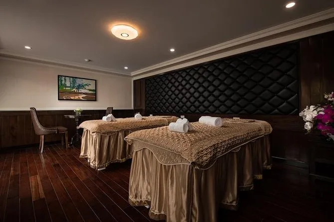 Sie erhalten einen Hin- und Rücktransfer vom Altstadtviertel Hanoi (gegen eine kleine Gebühr), alle Mahlzeiten (Frühstück, Mittagessen, Abendessen), Mineralwasser in der Kabine, einen Willkommensdrink in der Kabine, geführte Kajak- oder Bambusbootausflüge, eine Sonnenuntergangsparty mit lokalem Wein und Obst, eine Tai Chi Einheit bei Sonnenaufgang, eine Kochvorführung (Frühlingsrollen!), Angelausrüstung für das nächtliche Tintenfischangeln sowie eine Übernachtung in einer komfortablen Kabine mit großen Fenstern mit Blick auf die Lan Ha Bucht.