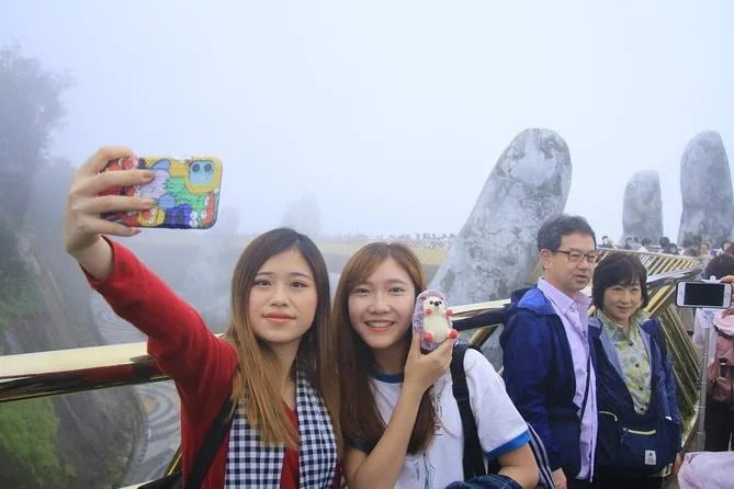 Die Ba Na Hills waren kühler als erwartet – im wahrsten Sinne des Wortes! Nimm eine leichte Jacke mit, auch wenn es in Da Nang heiß ist, denn oben auf der Seilbahn (die wirklich lang ist) ziehen manchmal Wolken direkt über deinen Kopf hinweg. Die französischen Weinkeller unter der Erde riechen muffig und alt; im Fantasy Park herrscht Trubel mit Kindern, die an Arcade-Spielen herumtollen. Aber nichts übertrifft das Gefühl, auf der Golden Bridge zu stehen – diese riesigen steinernen Hände, die den Weg halten, lassen dich fühlen, als würdest du über den Bäumen schweben. Ich habe hier viel zu viele Fotos gemacht.